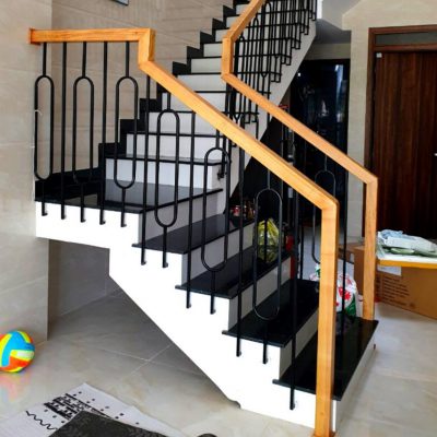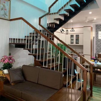- Cầu thang sắt kết hợp gỗ – sự hòa quyện giữa hiện đại và ấm áp, rất được ưa chuộng trong không gian sống cao cấp.